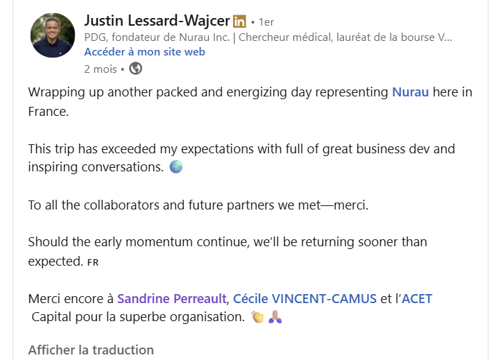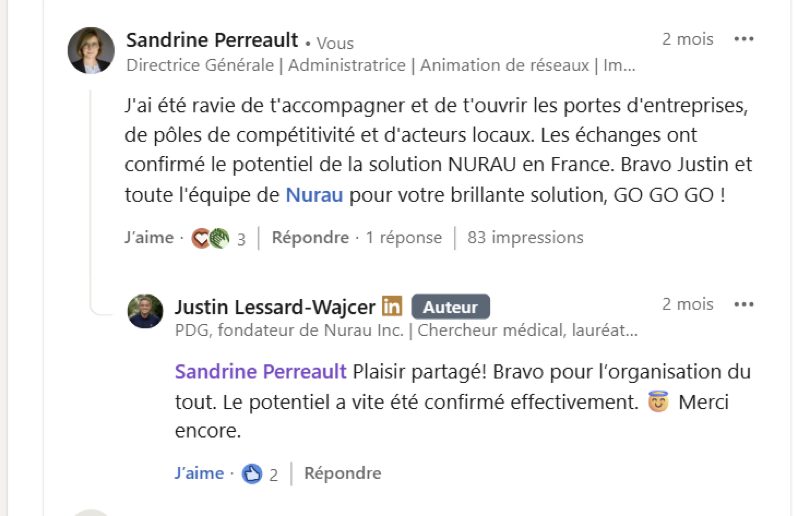 Un grand merci à Sandrine pour la qualité des rencontres organisées et la pertinence des intervenants mobilisés. Elle a su cerner les besoins de nos startups et créer des mises en relation stratégiques, avec un professionnalisme remarquable.